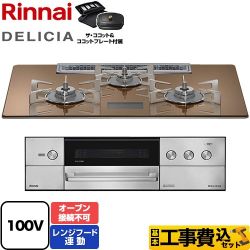【工事費込セット(商品+基本工事)】 リンナイ DELICIA(デリシア) AC100V電源タイプ ビルトインコンロ オーブン接続不可 幅75cm スパークリングカッパー ザ・ココット付属 【プロパンガス】 ≪RHS72W38M12VCSTW-LPG≫