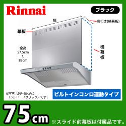 リンナイ・レンジフード・クリーンフード(ユニバーサルデザイン・ファルコン型)・EWRシリーズ・ビルトインコンロ連動・幅75cm・ブラック・上部スライド前幕板付属≪EWR-3R-AP751BK≫