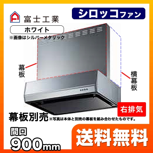 富士工業 レンジフード スタンダード シロッコファン 間口:900mm 右排気 整流板 前幕板別売 ホワイト 【送料無料】≪BFRS-3K-901R-W≫