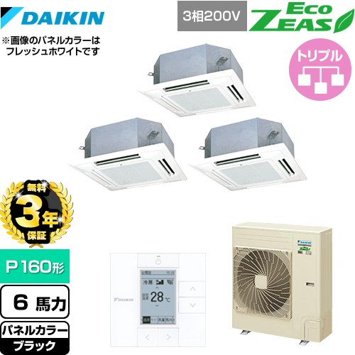 | 商品構成 | 業務用エアコン室内機:FHNP50FB×3 業務用エアコン室外機:RZRP160BY×1 業務用エアコン部材:BYNJ71LK×3 パネル 業務用エアコン部材:BRC1G4×1 ワイヤードリモコン 業務用エアコン部材:KHRP58S316H×1 分岐管 |