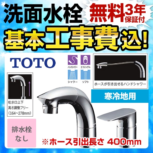 【工事費込セット(商品+基本工事)】TOTO 洗面水栓 ツーホールタイプ(コンビネーション水栓) 台付シングル混合水栓 スパウト長さ147mm メタル 排水栓なし ≪TLG05301Z≫